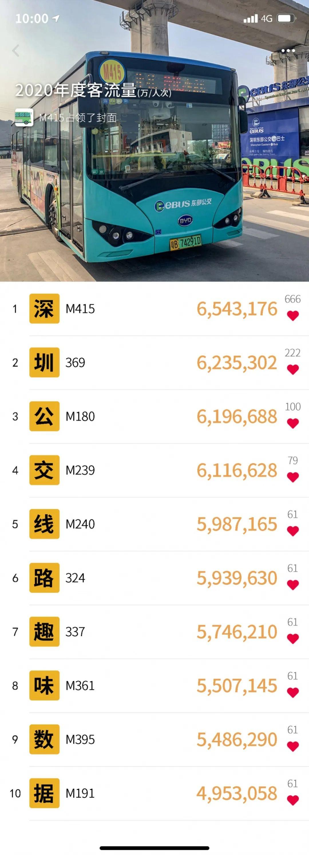 线路2020年共载客6,235,302人次,等于将全深圳近一半的常住人口运送了一遍。