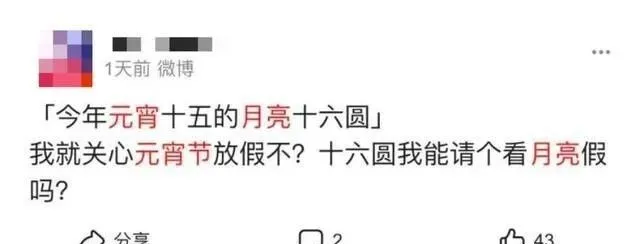 网友们迫不及待,纷纷留言求个“月亮假”。