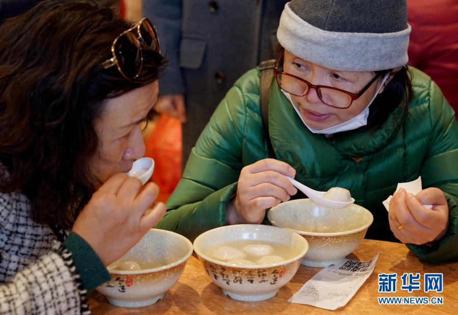 2月24日,顾客在“宁波汤团店”吃汤圆。新华社记者刘颖摄