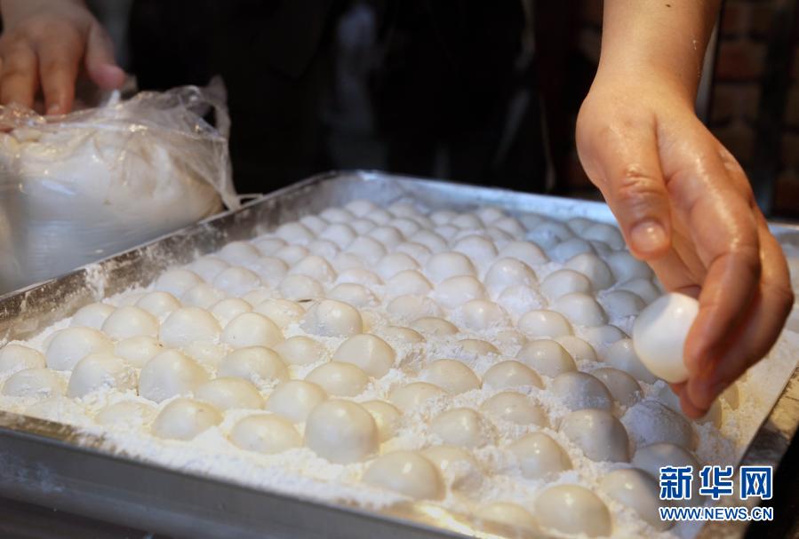 2月24日,“宁波汤团店”师傅在包制黑芝麻汤圆。新华社记者刘颖摄