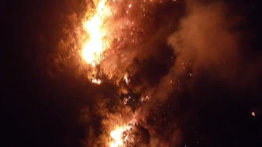 据朱某文所述,当日上午,朱某文随家人来到新联村坳背山祭拜,将事先准备好的烟花一一点燃,期间烟花喷射的火花引燃枯草引发森林火灾,火势借着风势迅速蔓延。在赶来的村镇干部、护林员等工作人员的努力下,山火终于被扑灭,而朱某文则被民警带回当地派出所接受调查。