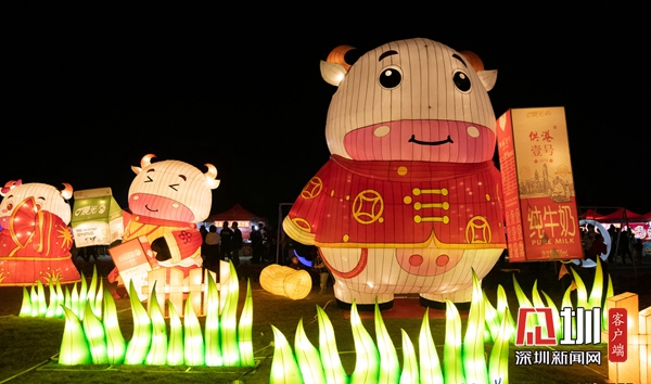 除了吃汤圆、赏圆月,看花灯亦是人们欢度元宵的一个标配。记者了解到,今年欢乐田园推出首届新年灯会,此次灯会主打农耕文化与光明特色,意在让传统与时尚碰撞出创意火花。在观景区中央,昂首挺立的金牛彩灯气势轩昂,旁边头戴客家凉帽的卡通人物以及二十四节气的花灯梦幻多彩。据悉,此次灯会不仅结合自然景观打造了“五谷丰登、欢乐牛年、荷荷美美、金玉满堂”等大型沉浸式主题灯组,更创新制作了“田园之窗、彩虹栈道、绿野仙踪”等千盏花灯,以场景化、故事性的承载空间,为广大市民呈现一场光影文化艺术盛宴。