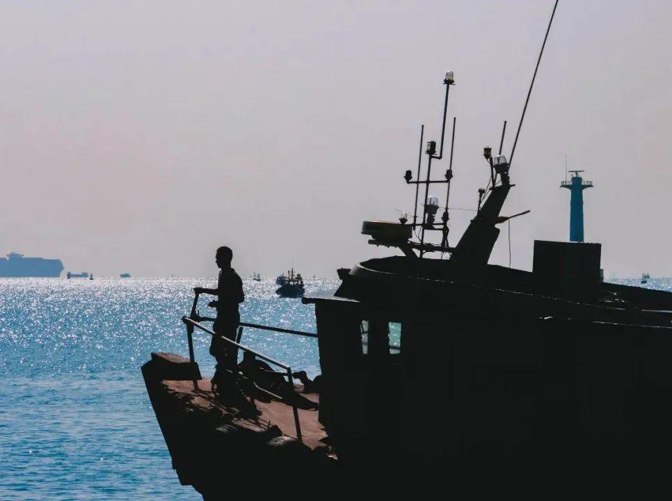渔民逆光的背影