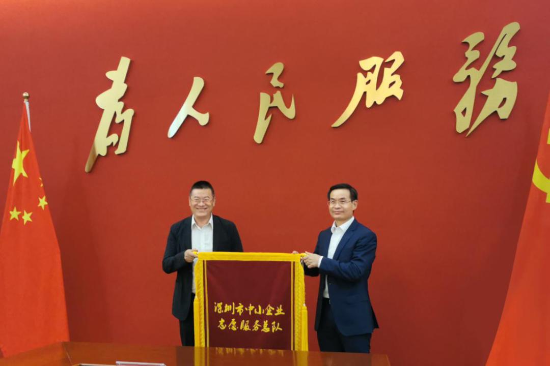 ▲聂新平为深圳市中小企业志愿服务总队授旗