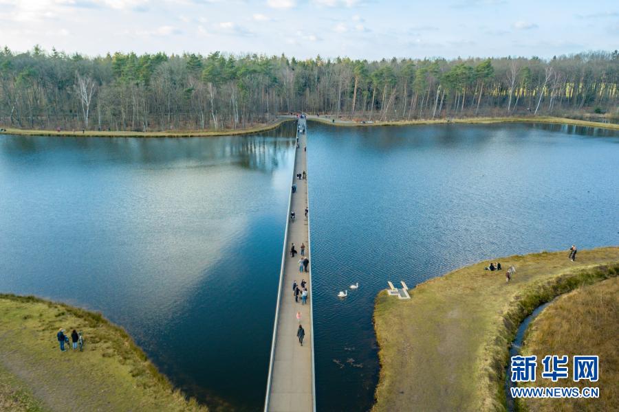 2月27日,人们在比利时小镇波克莱克附近的“水中通道”中前行(无人机照片)。