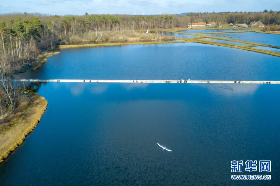2月27日,人们在比利时小镇波克莱克附近的“水中通道”中前行(无人机照片)。