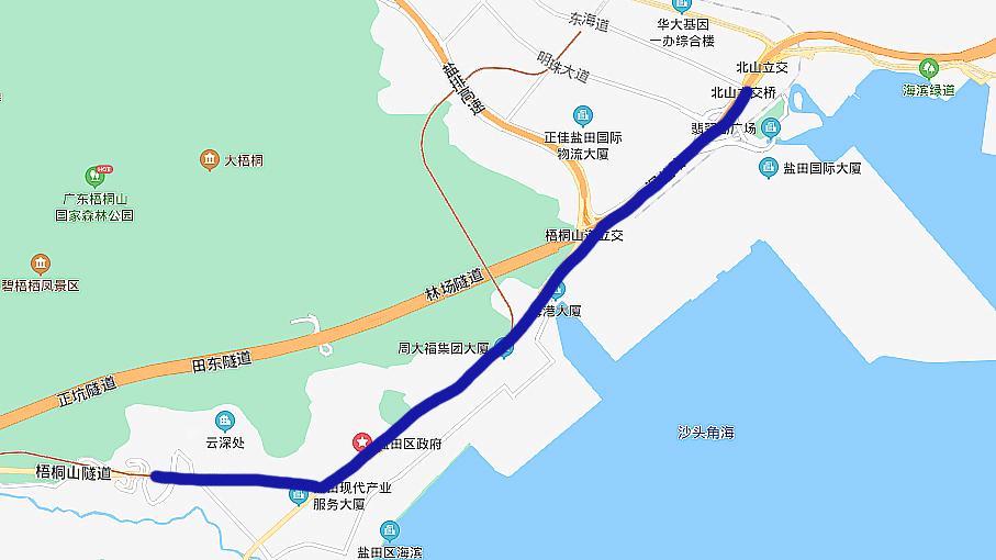 (▲深盐路(上图蓝线所示) 图片来源:深圳交通)