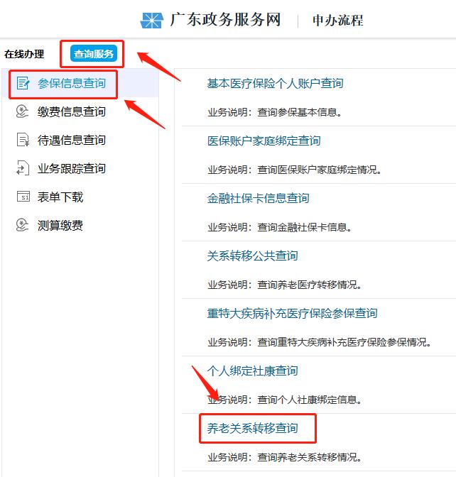选择“查询服务”-“参保信息查询”-“养老关系转移查询”