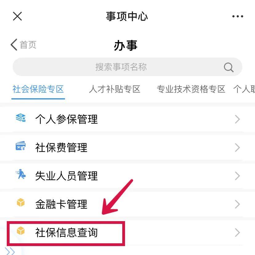 选择“办事”-“社保信息查询”