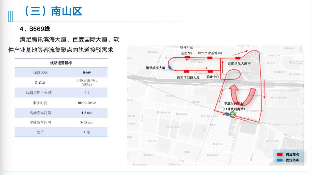 卓越后海中心、招呼站(软件产业基地1栋、软件产业基地2栋)、腾讯滨海大厦、深圳湾创投大厦、招呼站(盈峰中心、百度国际大厦南)、卓越后海中心