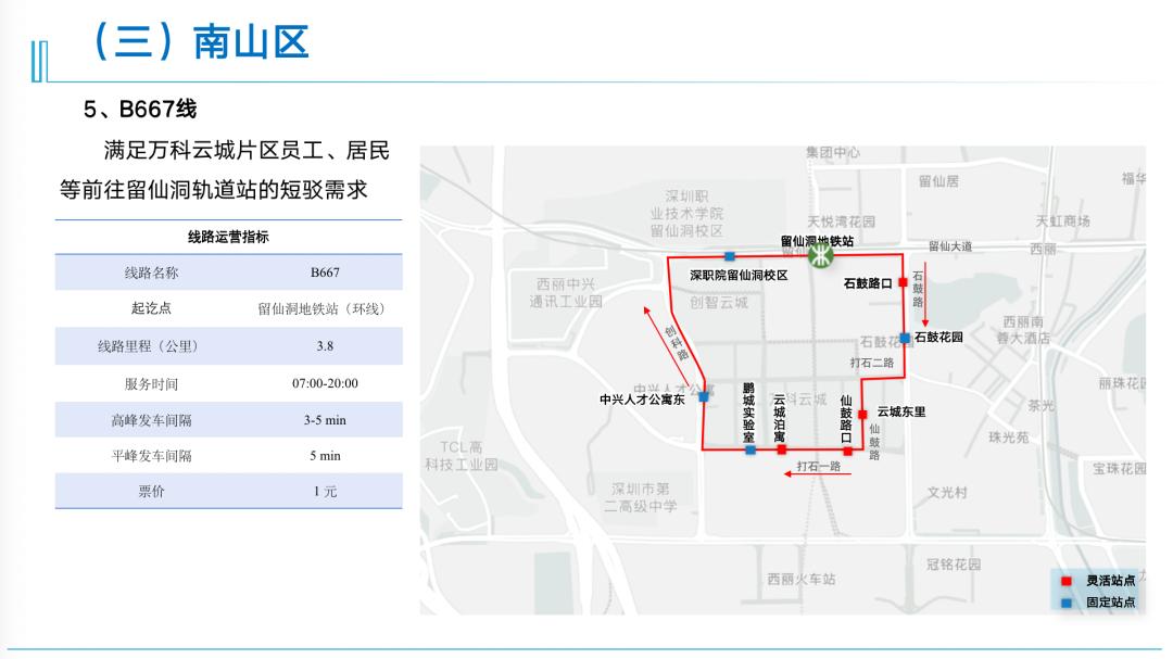 留仙洞地铁站、招呼站(石鼓路口)、石鼓花园、招呼站(云城东里、仙鼓路口、云城泊寓)、鹏城实验室、中兴人才公寓东、深职院留仙洞校区、留仙洞地铁站