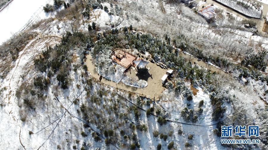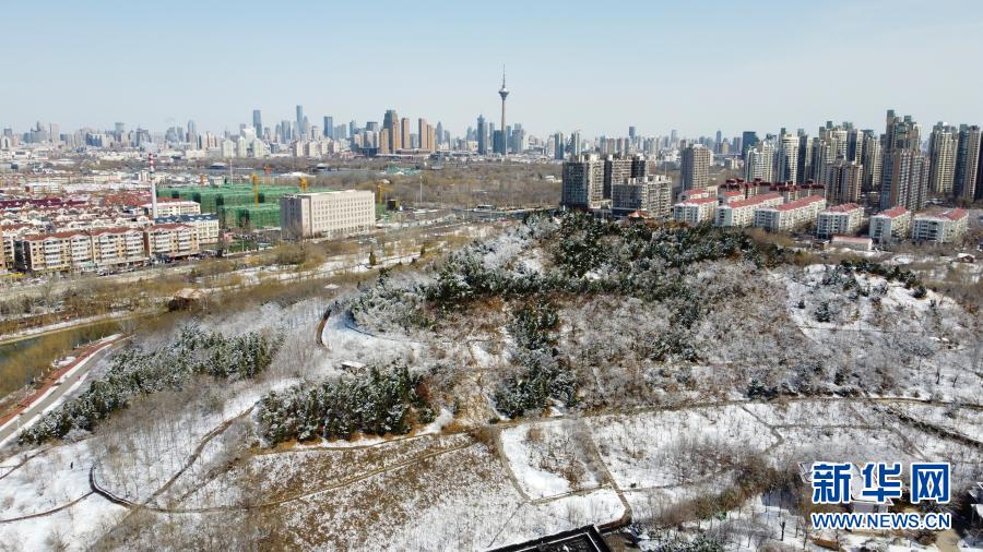 3月1日拍摄的天津市南翠屏公园内的雪景(无人机照片)。新华社记者赵子硕摄