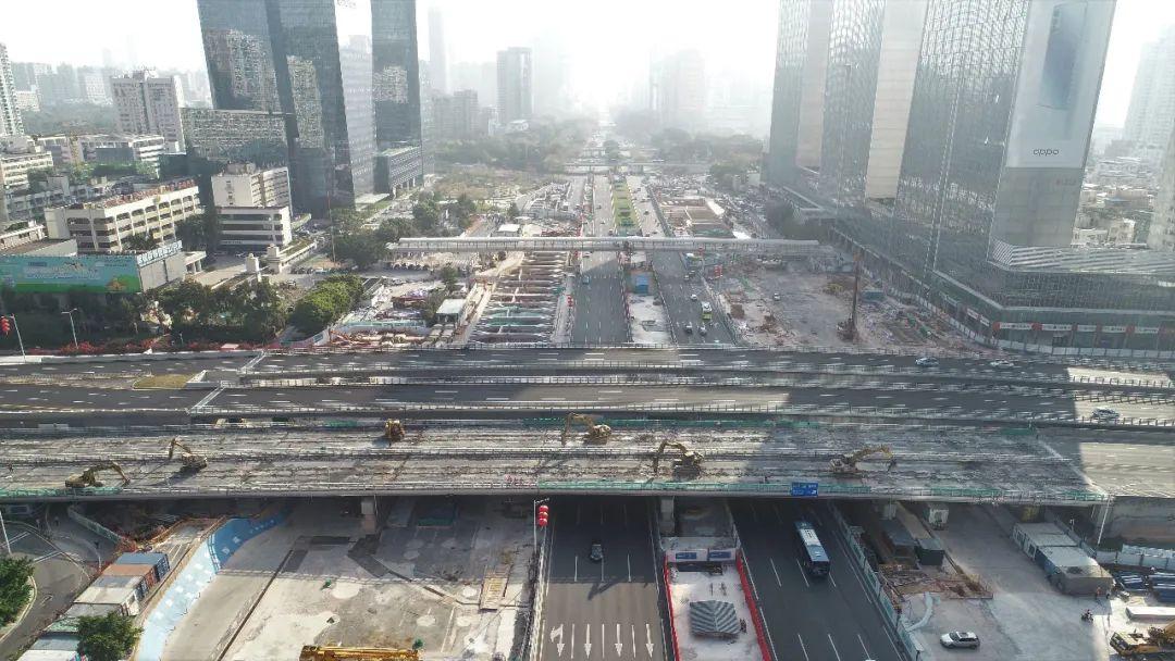▲钢便桥拆除桥面破除 (图源:深圳市轨道交通)