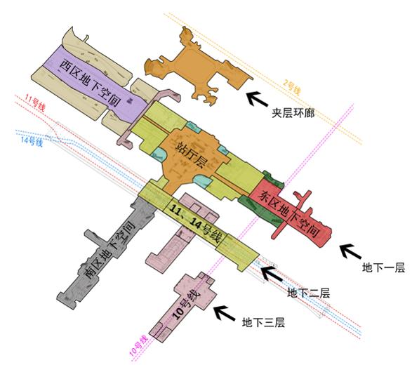 四条地铁线路换乘的地下交通枢纽