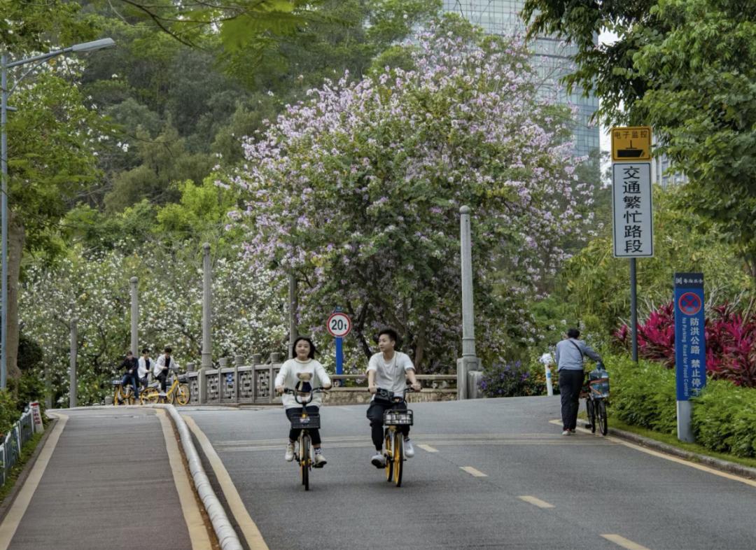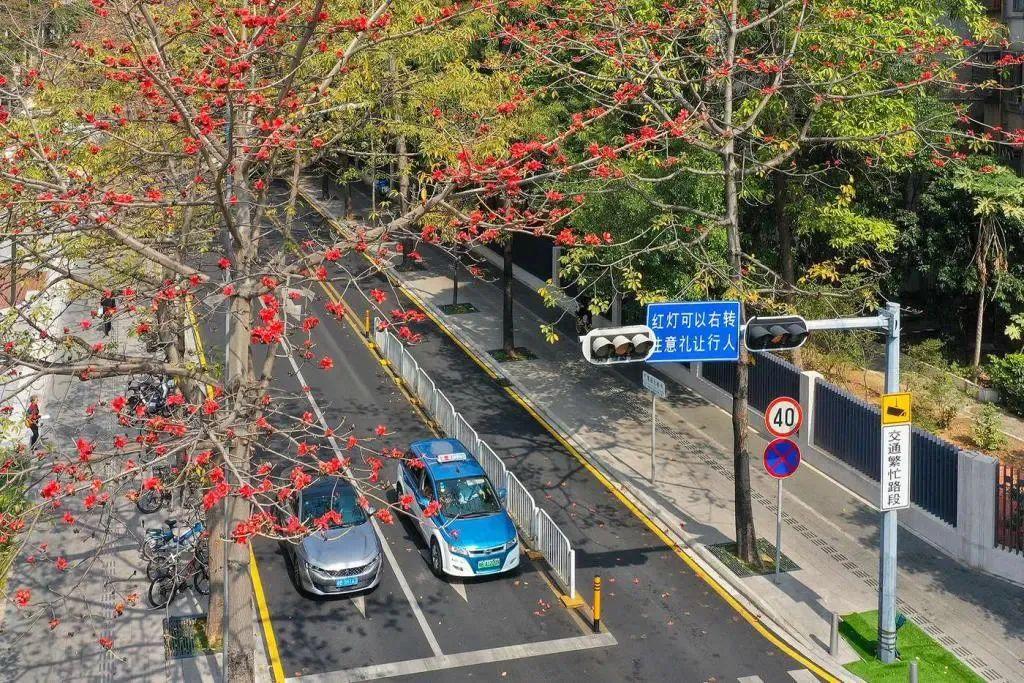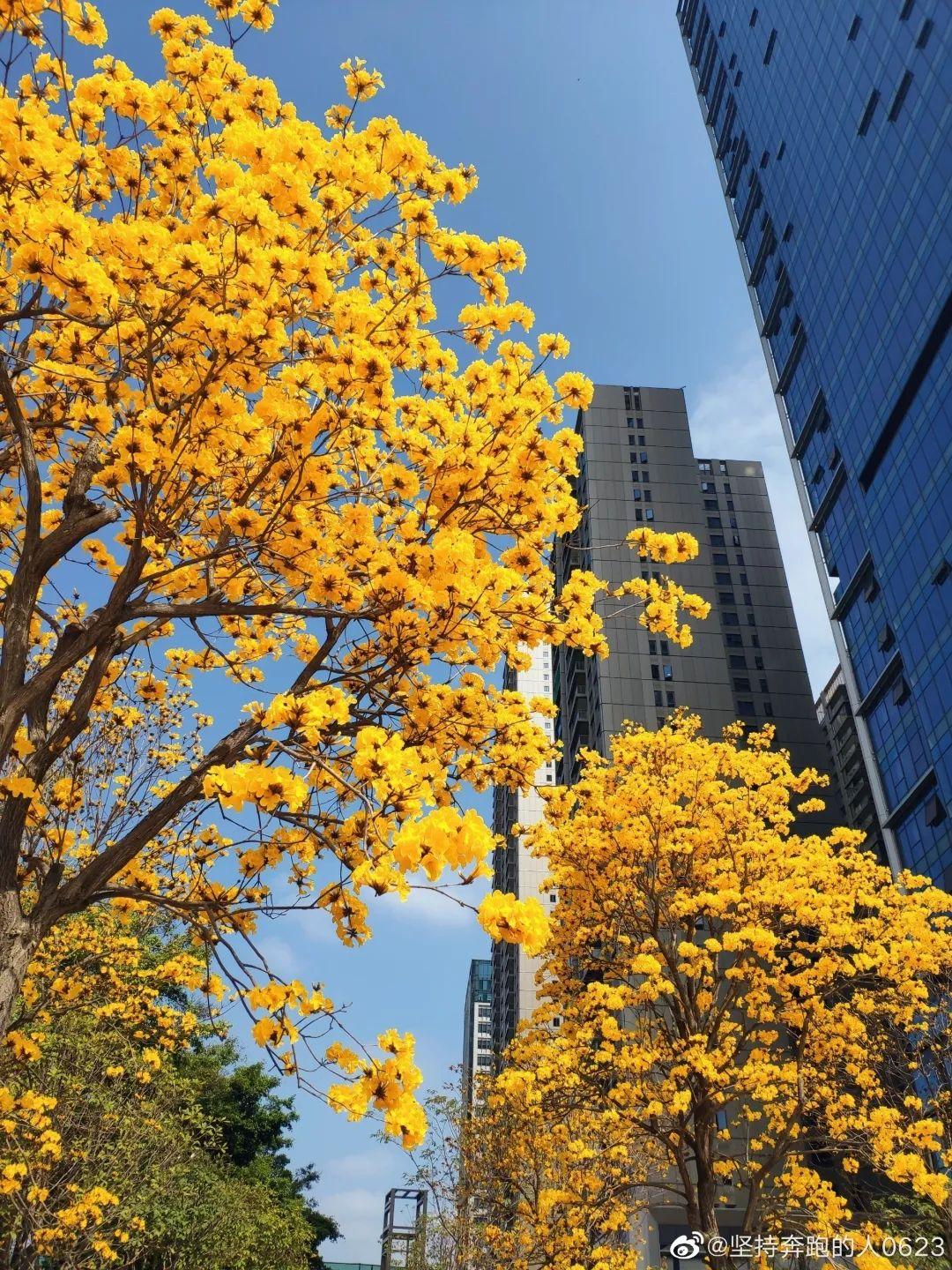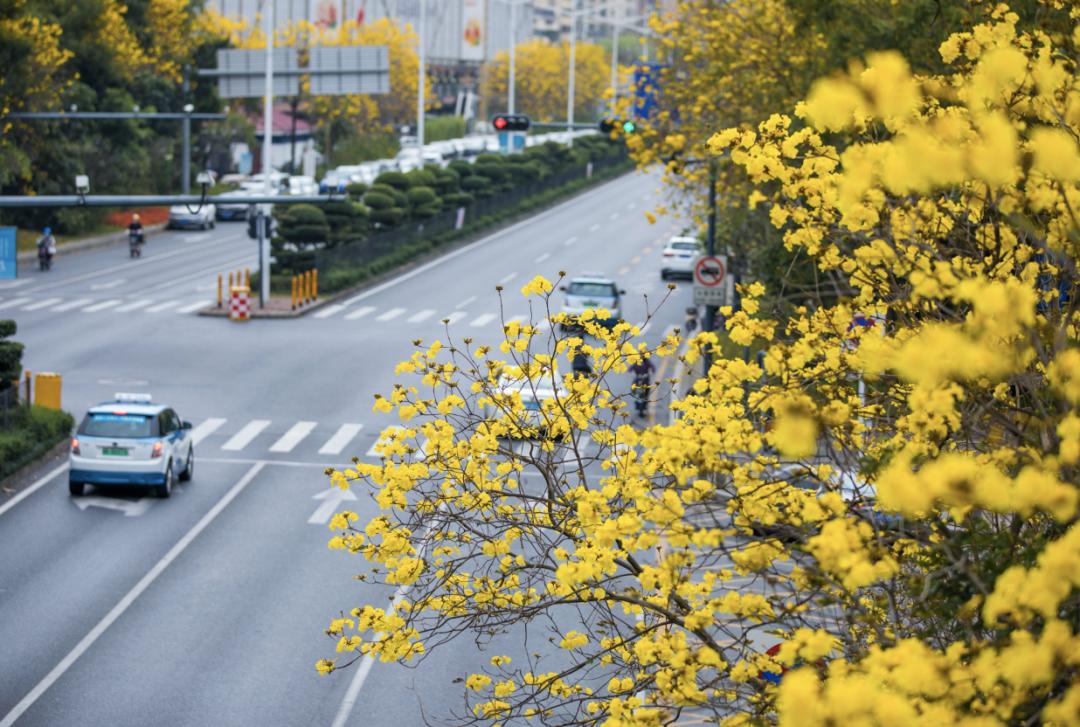 例如,前海路、后海大道海岸城段、沙河东路、农园路等处的黄花风铃木,南海大道、华英路、大沙河沙河西沿线、高新南四道、深湾一路、中康路、等处的宫粉紫荆,景田东路、红棉一路、赤湾五路等处的木棉花……其中不少道路因花开的好,走红网络。