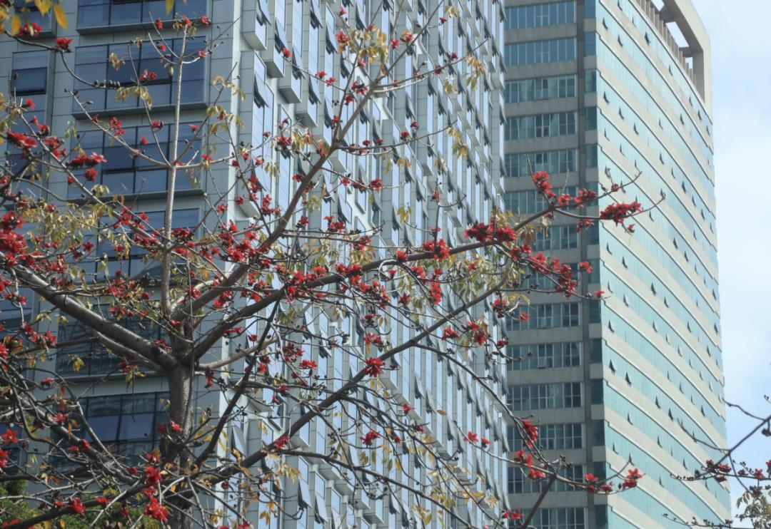 连日来,深圳道路旁、公园里、小区边,宫粉紫荆、风铃木、簕杜鹃、木棉等竞相盛开,花团锦簇,小叶榄仁等树木吐露嫩芽,一片粉了,红了,黄了, 绿了,多彩多姿。