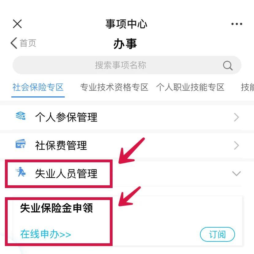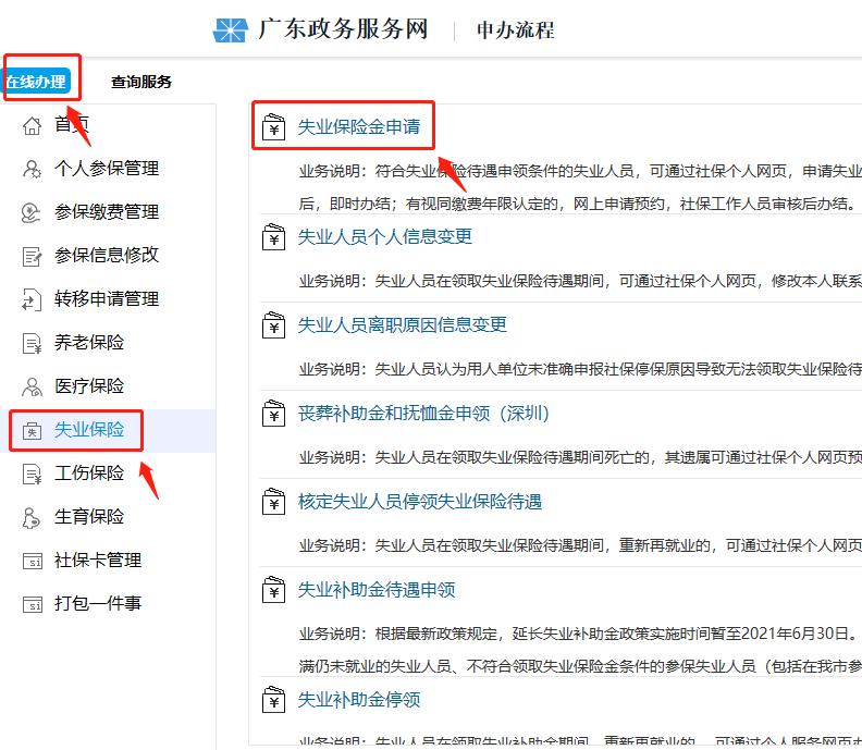 ●登录后选择“在线办理”-“失业保险”-“失业保险金申请”