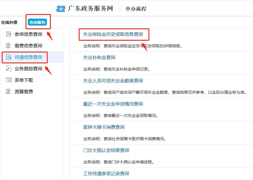 ●登录后选择“查询服务”-“待遇信息查询”-“失业保险金历史领取信息查询”,查看申领结果。
