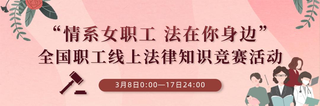 2021年是“八五”普法开端之年和《民法典》实施第一年,为推动《民法典》、性别平等和法规宣传普及,全总女职工部、全总法律工作部、中国职工发展基金会、中国工人出版社联合组织开展“情系女职工 法在你身边”全国职工线上法律知识竞赛活动。