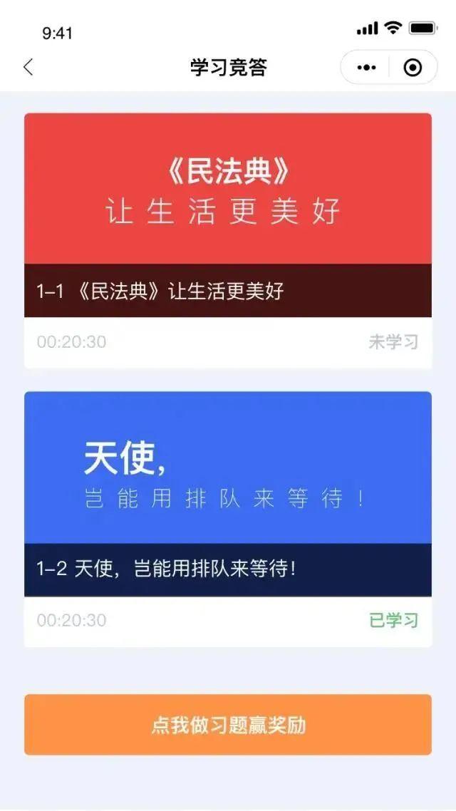 学习竞答以闯关的形式开展,共设10个关卡,每日系统自动开放1个关卡。每个关卡包含2个普法微视频和5道竞答题目,每个关卡答题正确率60%以上即为闯关成功。