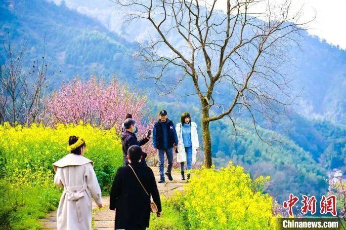 资料图:游客正在婺源篁岭赏花,并拍照留念。 金洁 摄