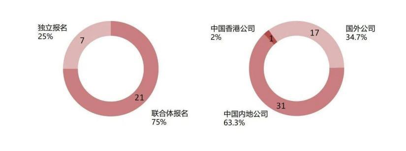 本项目于2020年8月29日发布公开招标资格预审正式公告,共28家单位报名,其中联合体报名21家,独立报名7家;收到来自境内外公司共49家,其中公司总部位于中国内地31家、中国香港地区1家、国外地区17家;涉及除中国以外的国家和地区共计7个,包括法国、美国、德国、新加坡、加拿大、英国以及荷兰。