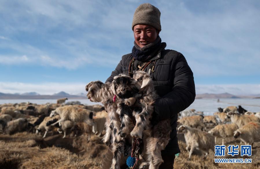 抱着小羊羔的牧人扎西(3月6日摄)。新华社记者普布扎西摄