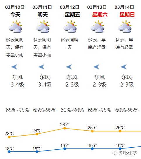 据@广东天气,3月9日-12日,冷空气东移出海,9-12日粤西北降雨稍明显,有小雨局部中雨,属稳定性降水,粤东南低层为弱反气旋,天空状况稍好些,但后期云量也会增多,其余地区近日阴天到多云,有零星的降雨。