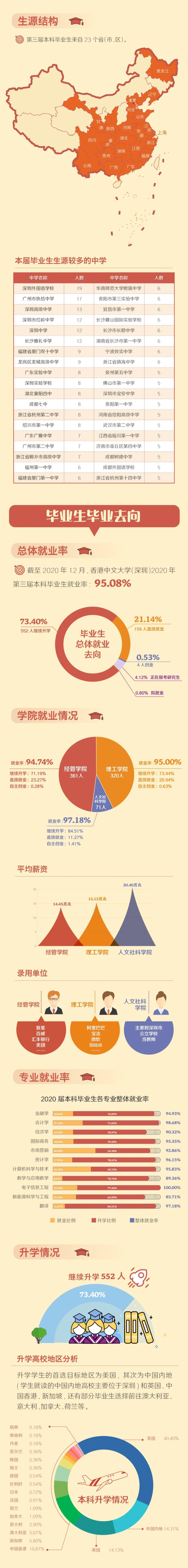 港中大(深圳)2020届本科毕业生的升学就业情况