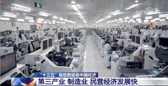 税收数据显示,“十三五”时期,我国税收收入产业结构继续调整,第三产业税收占比稳步提升,制造业不断发展壮大,民营经济发展迅速。