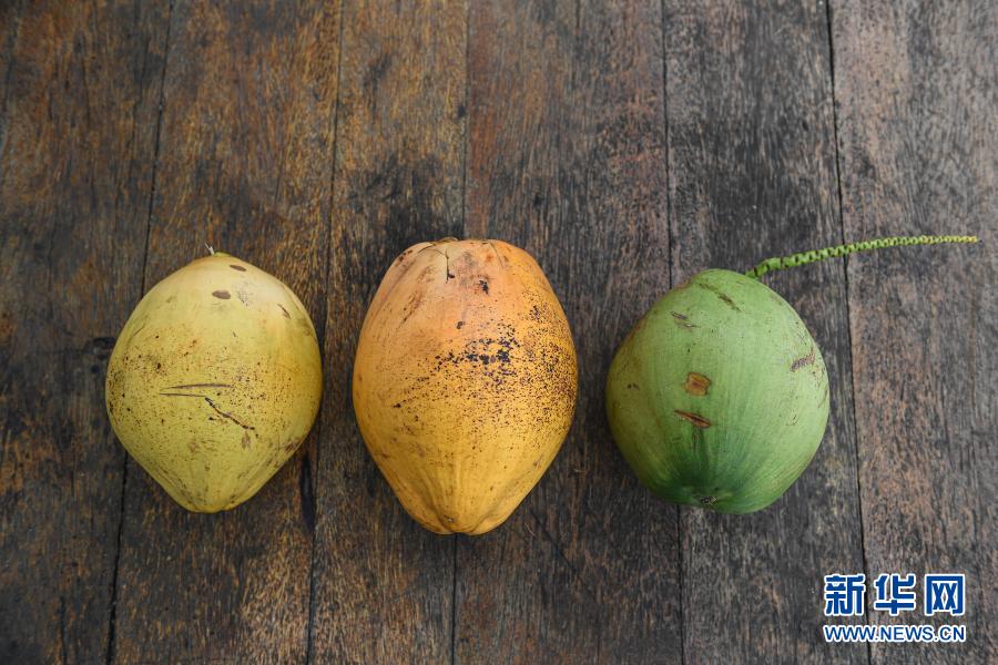 这是3月10日在海南文昌拍摄的矮种椰子,从左至右分别是“文椰2号”“文椰3号”和“文椰4号”。新华社记者 蒲晓旭 摄