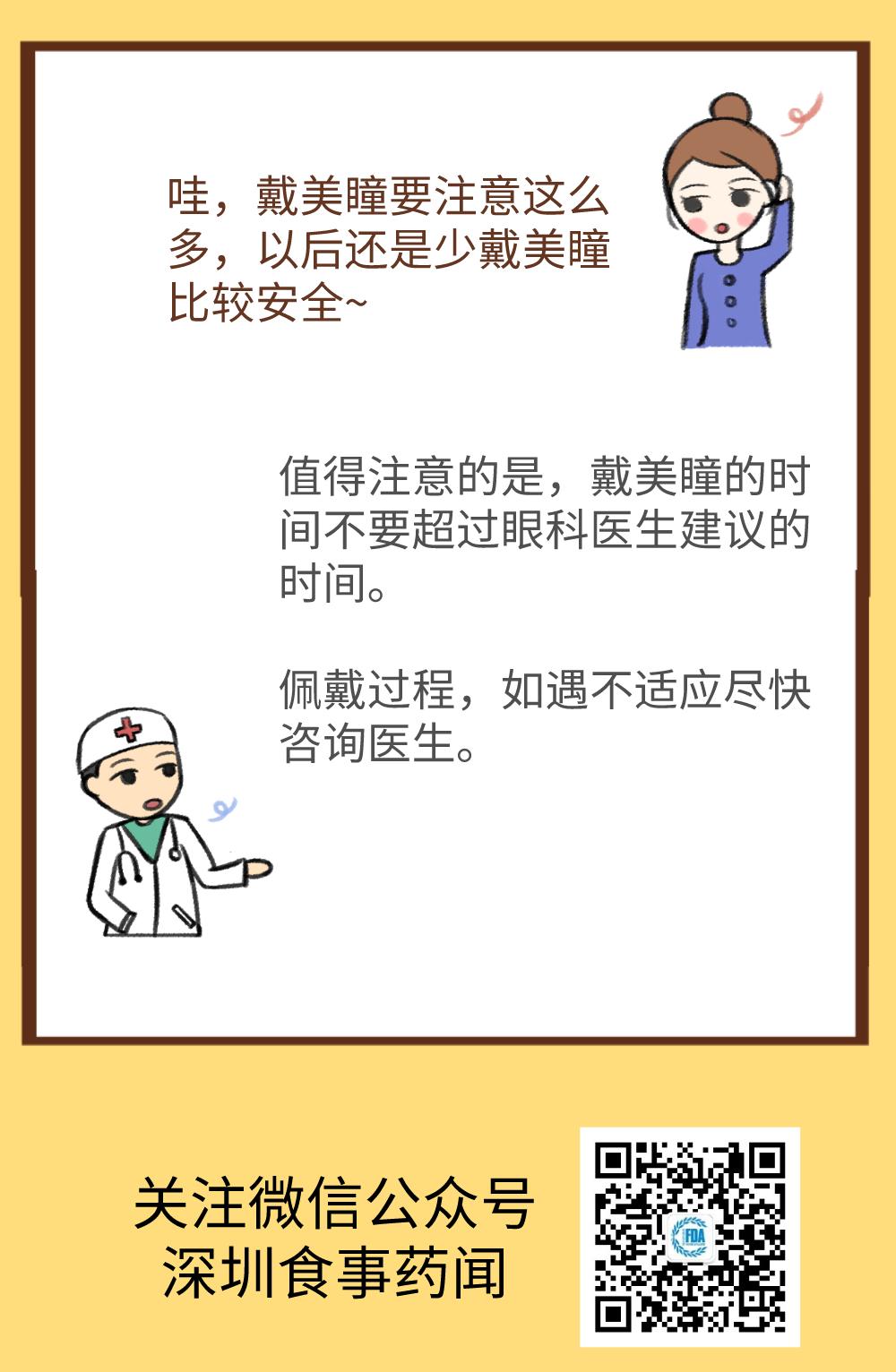 前两天一则“人大代表不建议年轻人戴美瞳”的新闻上了热搜。好几个经常戴美瞳的小伙伴看到消息后跑来后台留言问食安君“为啥不建议戴呢。”别急~食安君这就来给大家讲讲美瞳(彩色隐形眼镜)那些事儿~重要的事情再强调“亿”遍美瞳(彩色隐形眼镜)属于国家第Ⅲ类医疗器械是国家最高级别的医疗器械其对人体具有潜在的威胁因此应在专业人士的指导下佩戴美瞳此外佩戴美瞳过程中,如有不适请尽快就医日常生活中遇到不懂的食品药品安全问题记得来撩食安君呀~供稿单位 深圳市药物警戒和风险管理研究院编辑整理 深圳食事药闻转载请注明以上内容点在看,大家看