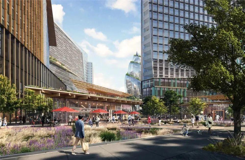 △图为总部塔楼旁2.5英亩的大都会公园的公共空间设计。