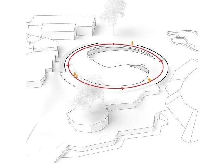 因此设计师将毛笋和星二的环形家分为了两个区域,平面设计图看起来极像中国传统的太极图阵,以表达阴阳平衡之意,为大熊猫的生活和交流提供了一个自由而又生态的栖居环境。