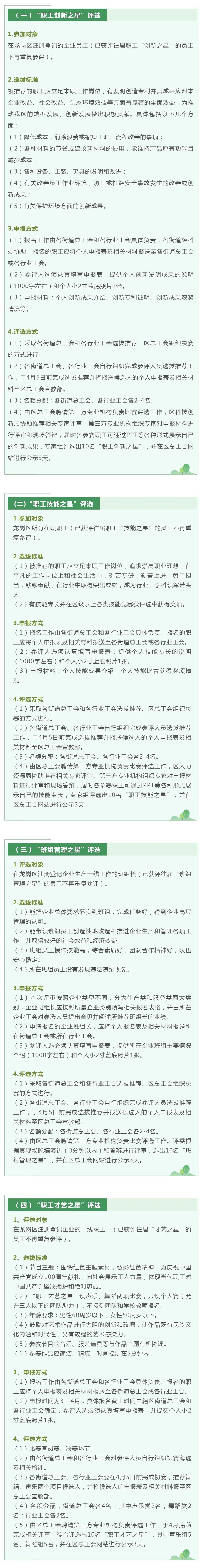 龙岗区第九届“职工之星”系列活动启动啦!将评选出“职工创新之星”“职工技能之星”“班组管理之星”“职工才艺之星”等4个项目!一起来看看活动详情吧~
