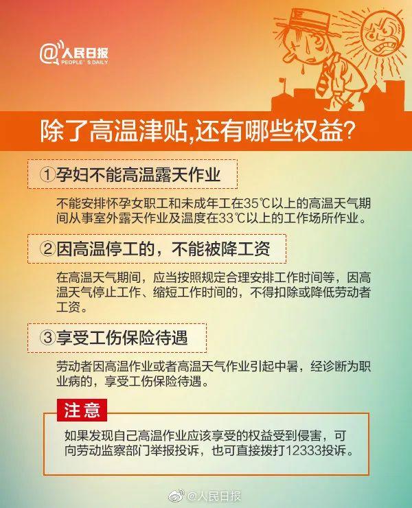 ●高温津贴标准拟调高至每人每月300元!●