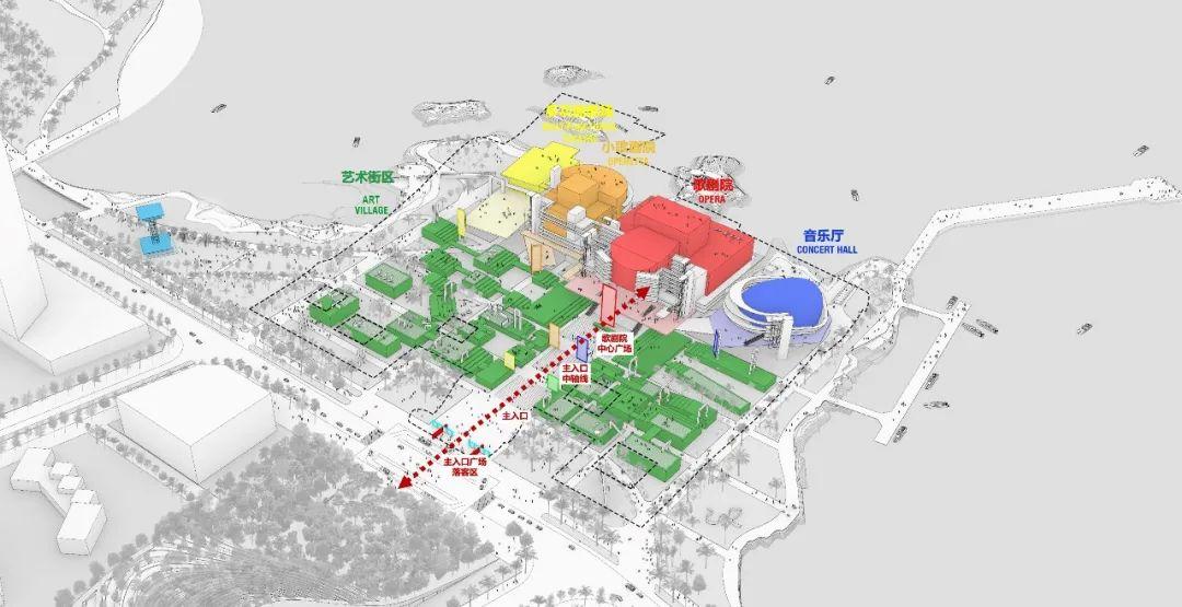 项目前期,深圳市规划和自然资源局组织开展了城市设计和建筑专题研究。研究对片区进行了整体谋划,分析借鉴国内外滨水地区文化项目经验,提出构建以歌剧院为核心、包含精品文化街区、商业艺术综合体等内容的文化聚落,全面提升片区艺术吸引力,带动蛇口半岛的整体文化提升。同时对片区的山海环境景观进行了深入分析,构建立体连续的山、海、城漫游路径,打造高品质的滨海休闲游览体验。为实现国际一流、中国领先的高标准要求,对歌剧院的规模内容、空间形态、功能分区、交通条件等进行充分研究,提出了规划设计条件。歌剧院设计用地范围17.5万平方米,总建筑面积22.2万平方米。