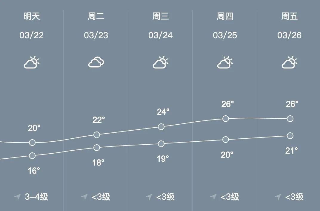 22日早晨最低气温15-16℃,早上出门要记得带上外套