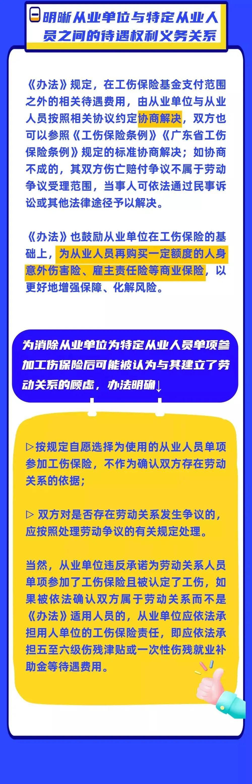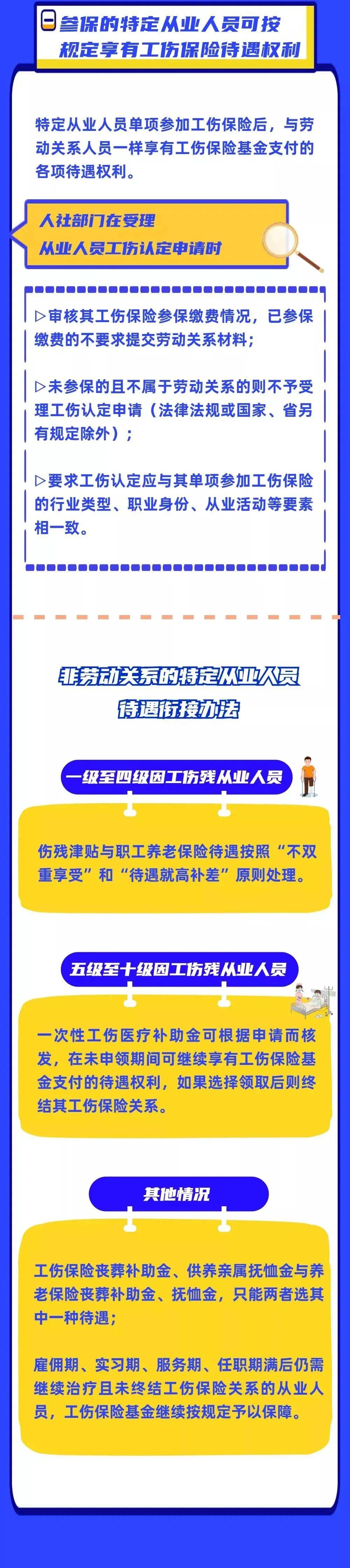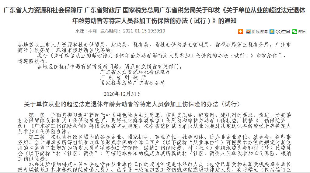 今年1月,广东省人社厅、省财政厅、省税务局出台《关于单位从业的超过法定退休年龄劳动者等特定人员参加工伤保险的办法(试行)》,将超龄劳动者、实习生、外卖小哥等8类特定人群纳入了工伤保险参保范围,可由所在从业单位(组织)自愿选择为其单项参加工伤保险、缴纳工伤保险费,参保人员按规定享受工伤保险待遇。该办法将从4月1日起实施。