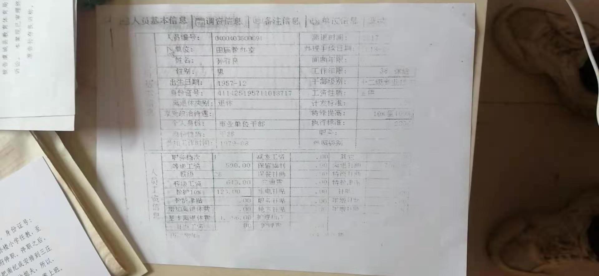 人社局档案显示,“孙存良”于2018年1月办理了退休手续。 受访者供图