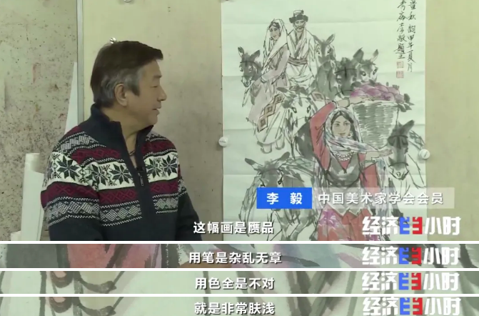 另一幅标称为当代画家、美协会员李毅的《南疆秋韵图》,被记者以500多元的价格拍到。同样,我们也请李毅本人来鉴定了真伪。