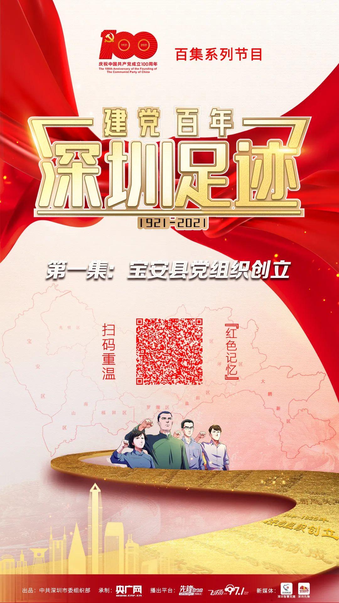 百年荣光,深圳见证。为庆祝建党百年,深圳市委组织部策划推出《建党百年•深圳足迹》音频节目,从3月24日开播至7月1日,每天1期,在央广网、深圳新闻广播(先锋898)、深圳音乐广播(飞扬971)等平台播出。百期音频节目融入重要历史原声、当事人回访、专家访谈等,真实重现波澜壮阔一百年间中国共产党在深圳这片热土留下的红色足迹。欢迎聆听、转发,分享深圳的红色故事。