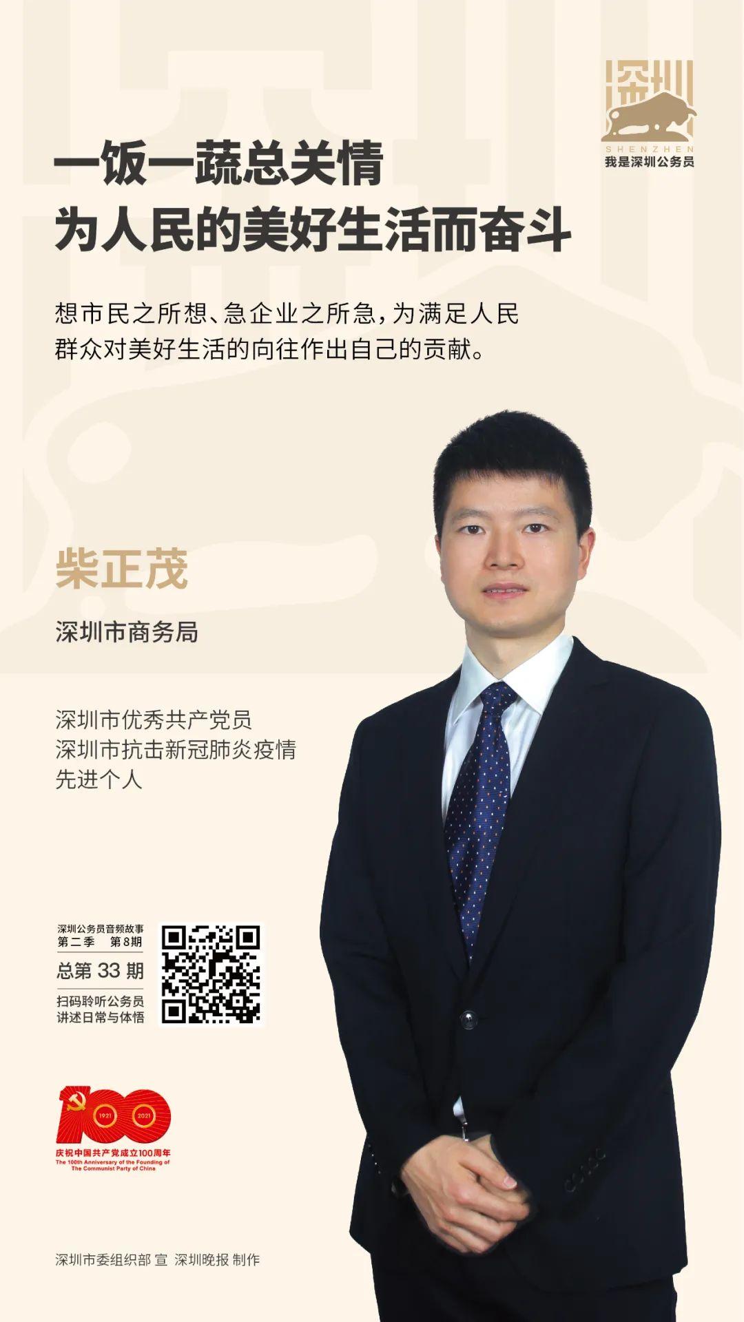 本期讲述深圳市商务局柴正茂的故事。2020年新冠疫情发生后,他深深牢记“一饭一蔬总关情”,在平凡的岗位上,想方设法保持市场稳定,刺激消费需求助力复工复产,为满足人民群众对美好生活的向往作贡献。欢迎大家扫码收听他的音频故事。