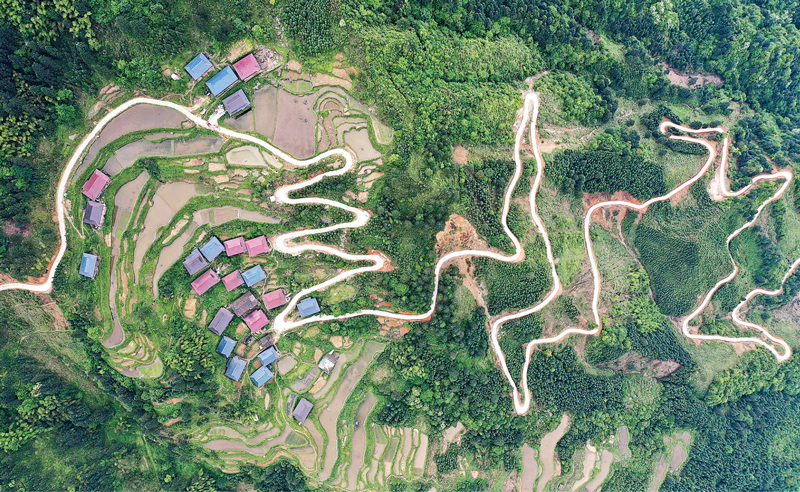 脱贫致富靠发展,发展先行是交通,交通扶贫使贫困地区告别“出行难”。图为2020年5月12日拍摄的广西融水苗族自治县同练瑶族乡大坪村下大弄屯的通屯公路。新华社记者黄孝邦/摄