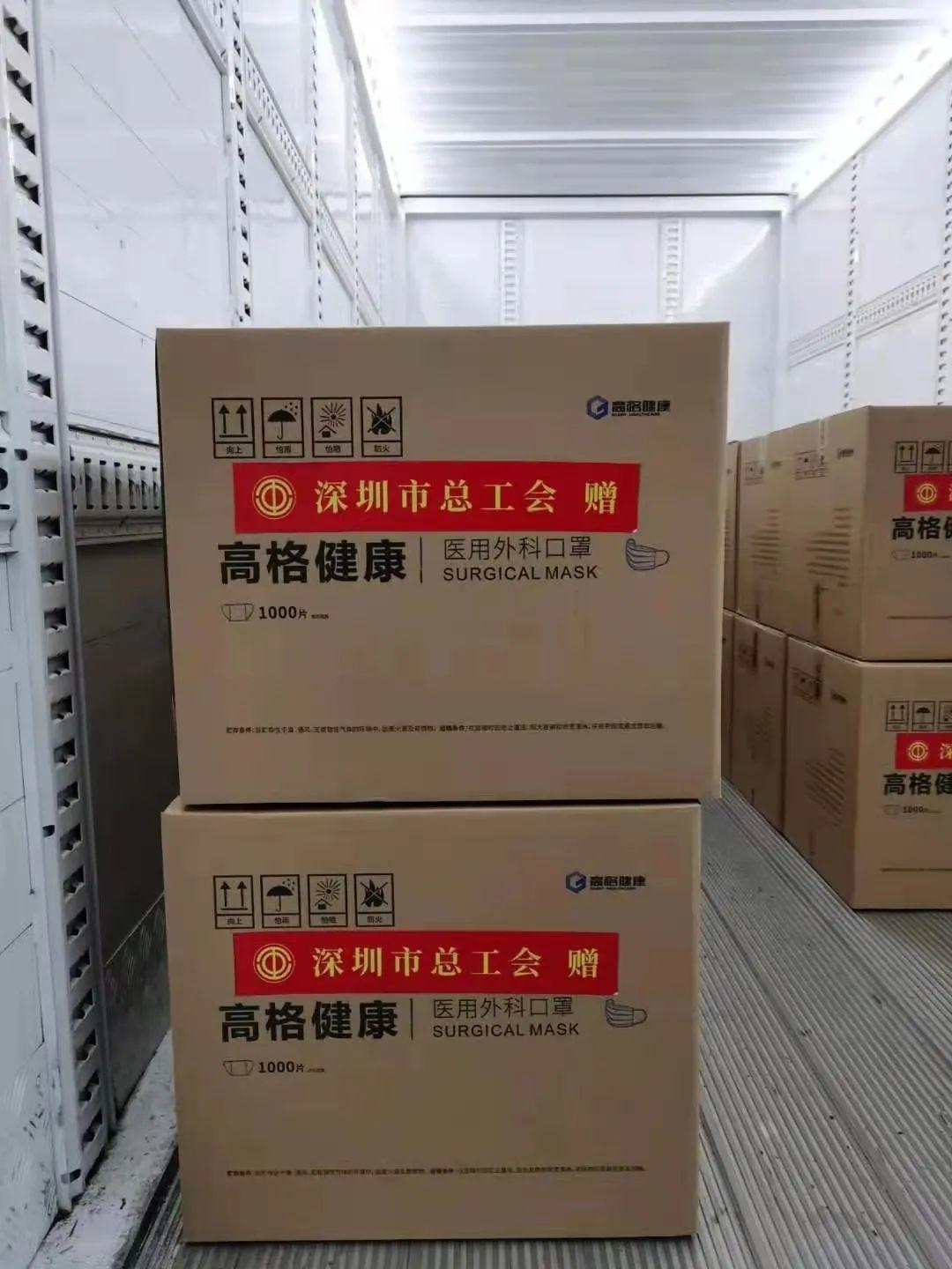 深港工会一家亲,深圳市总工会也于第一时间迅速响应,向香港工联会捐赠了10万只医用外科口罩,希望能够通过这次捐赠表达与香港工联会和广大工友同心抗疫的手足之情。期待香港能够早日结束疫情,香港工友能尽早恢复正常的工作和生活。