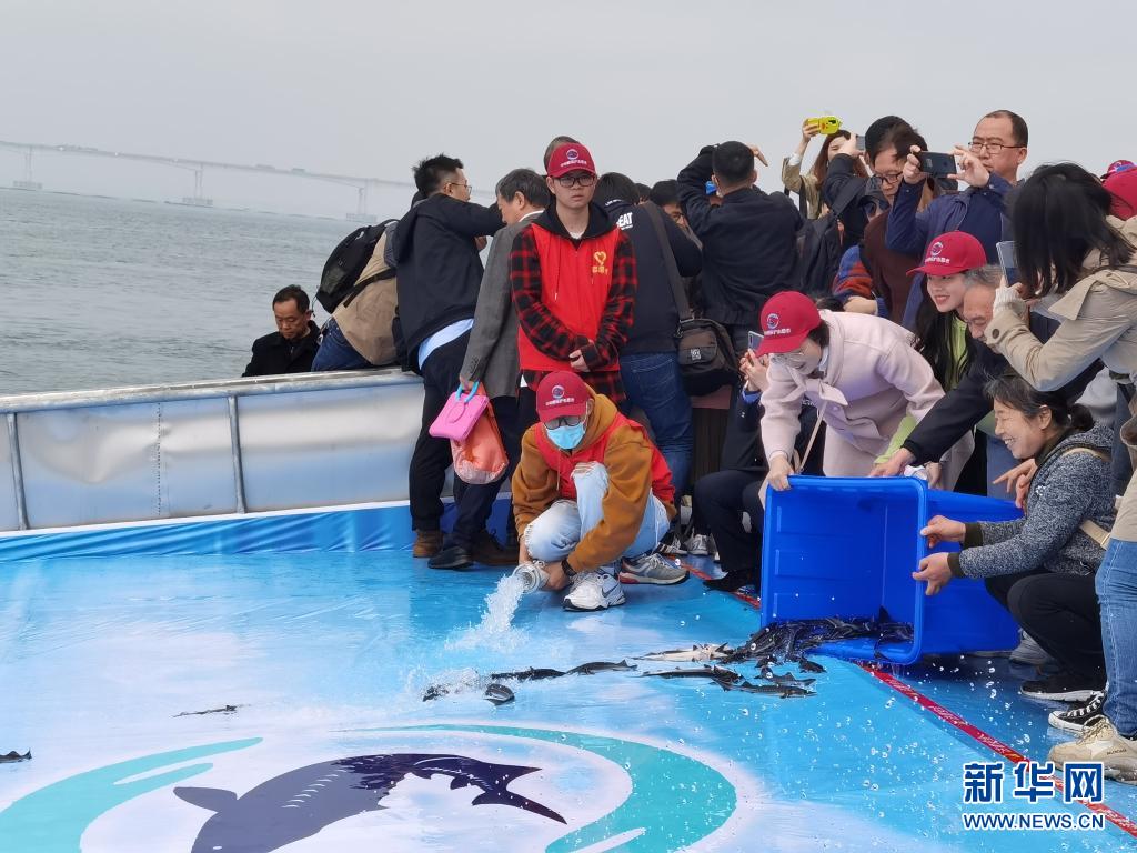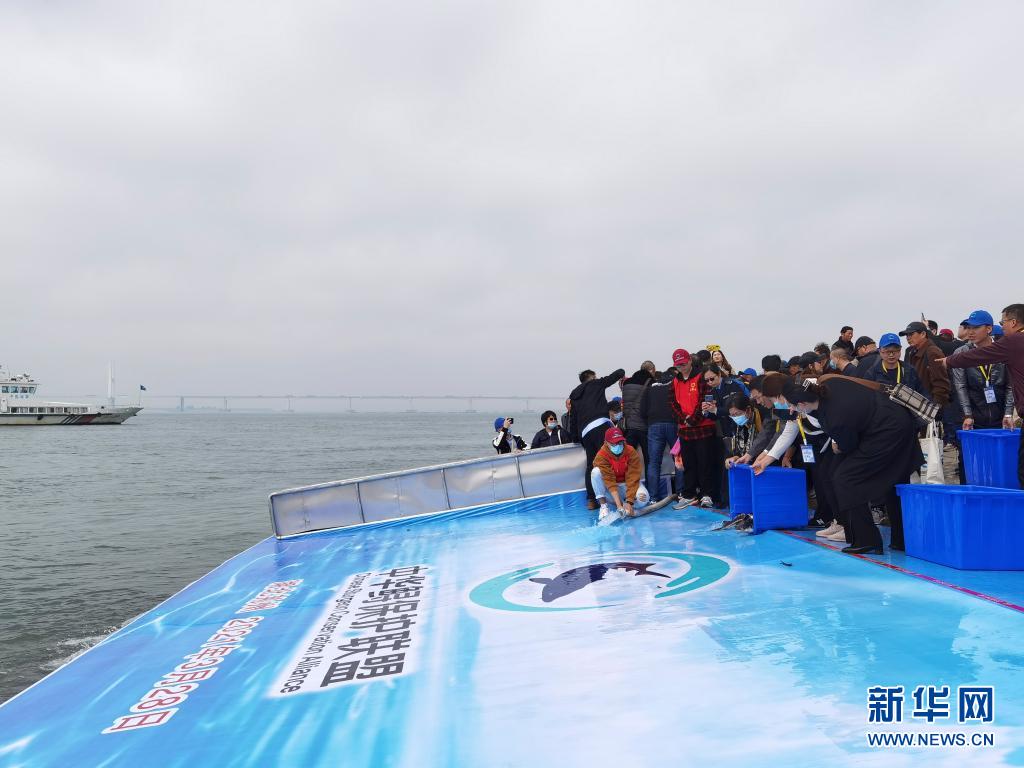 3月28日,环保志愿者在湖北省荆州市沙市汽渡码头参加放流活动。新华社记者王贤摄