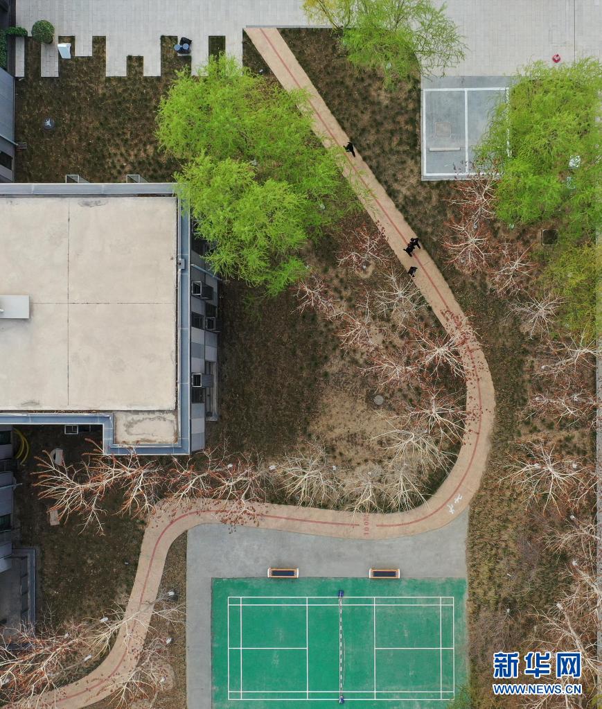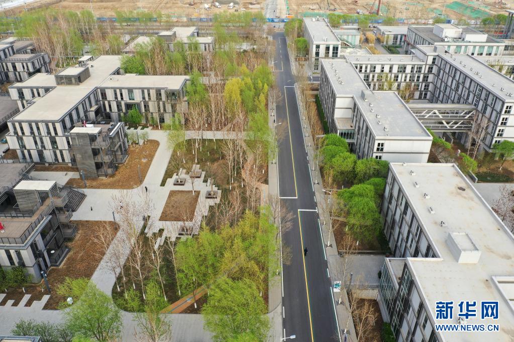 3月30日拍摄的雄安市民服务中心的春天景色(无人机照片)。新华社记者邢广利摄