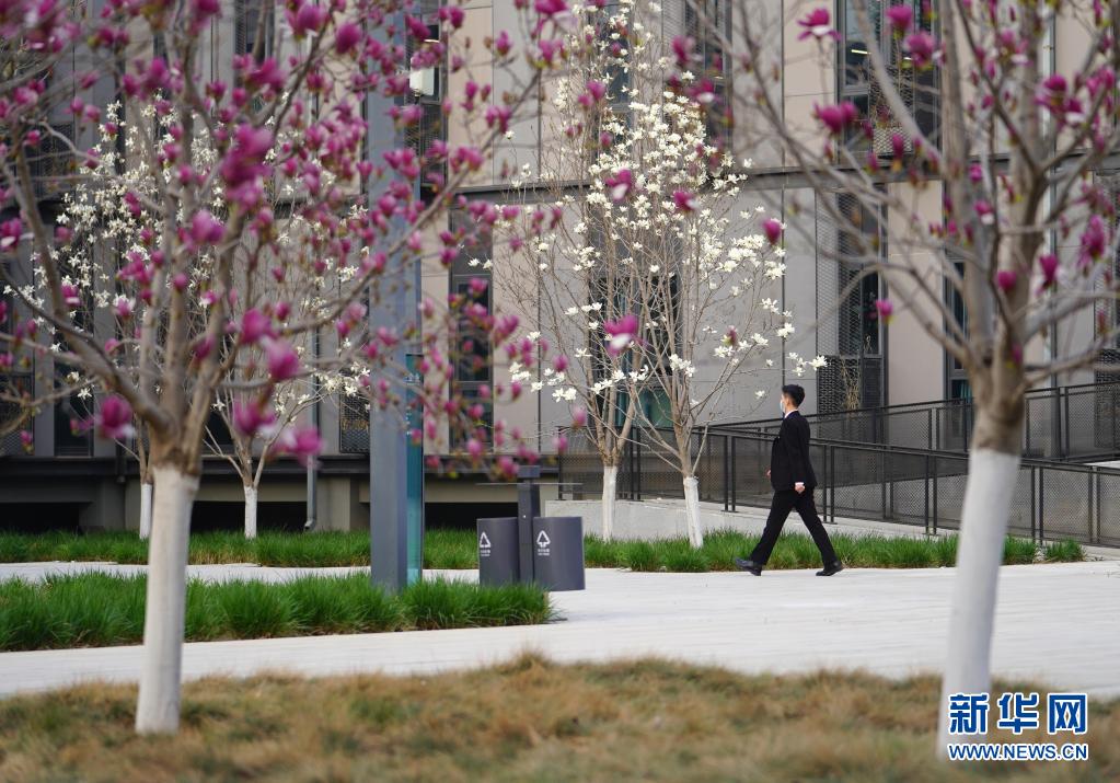 3月30日拍摄的雄安市民服务中心的春天景色。新华社记者邢广利摄
