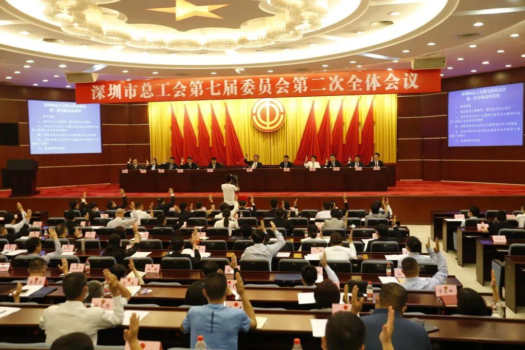 3月31日下午,深圳市总工会第七届委员会第二次全体会议在市民中心举行,市人大常委会副主任、市总工会主席彭海斌出席会议。会上,传达学习了全总十七届四次执委会议精神和省总十四届三次全委会议精神,选举了市总工会第七届委员会常务副主席、常委、委员,李映中当选为市总工会常务副主席。