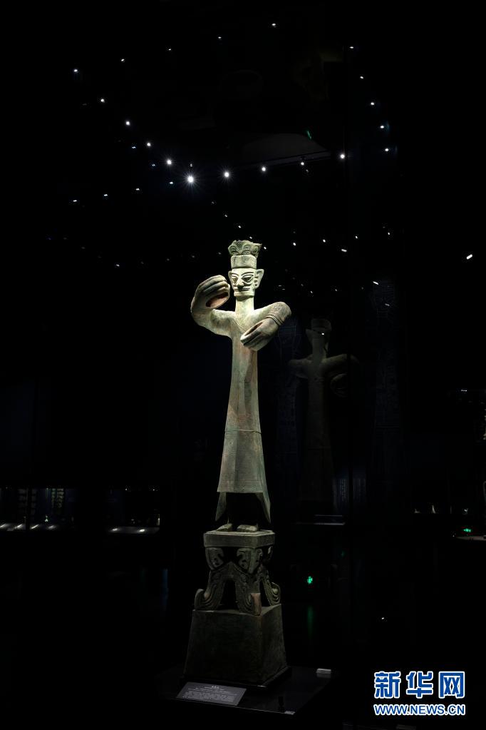 这是在位于四川省广汉市的三星堆博物馆拍摄的1986年出土于三星堆2号“祭祀坑”的青铜大立人(3月17日摄)。新华社记者沈伯韩摄